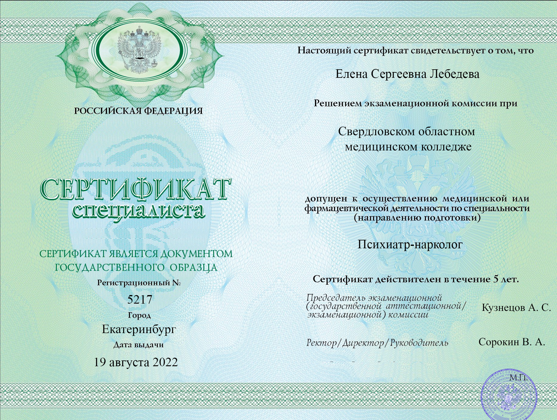 Елена Сергеевна Лебедева врач нарколог клиники доктора Стукаловой в Бикине